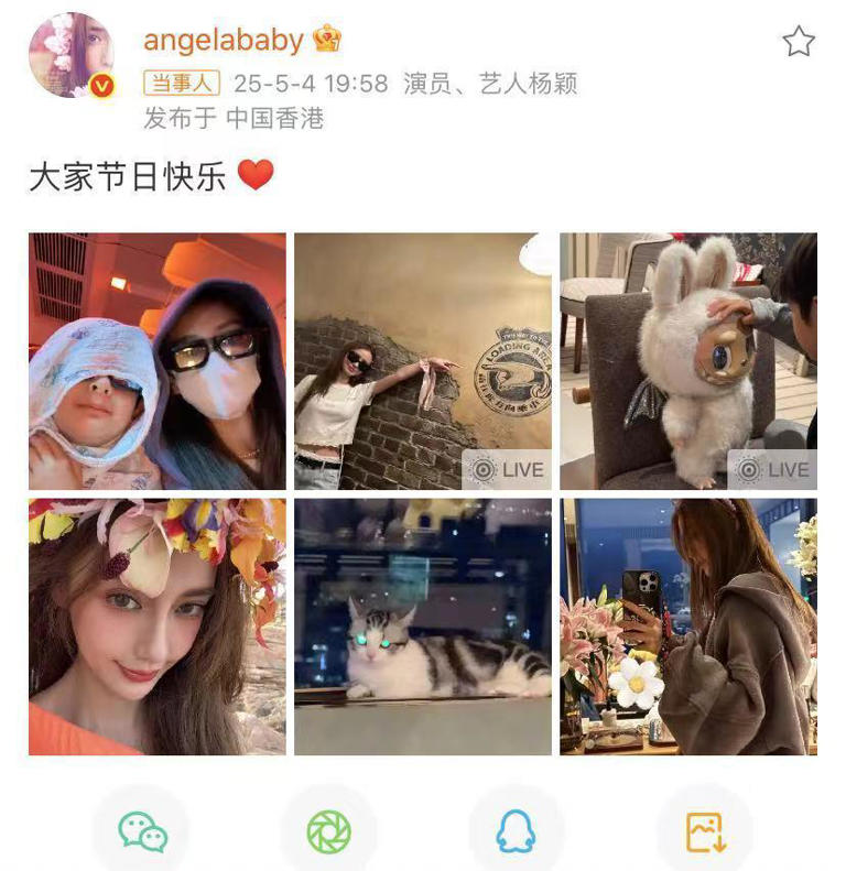 杨颖晒出和儿子小海绵的合影,IP 地址显示在香港。