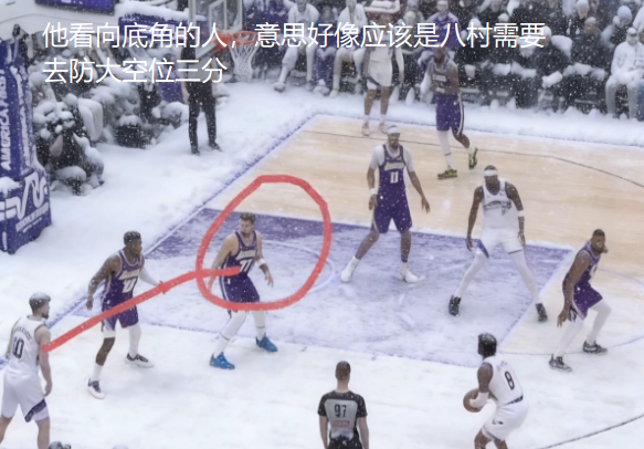 此时,东子非常莫名其妙的看向左侧底角的对手,完全没看明白,八村塁就在他旁边防守,他好像完全没有看到八村塁,而且他盯的非常专注,八村塁都有点迷惑,东契奇到底想做什么?难道他是暗示,八村塁去3分线外防守,作为角色,球员本应该是干这些的吗?
