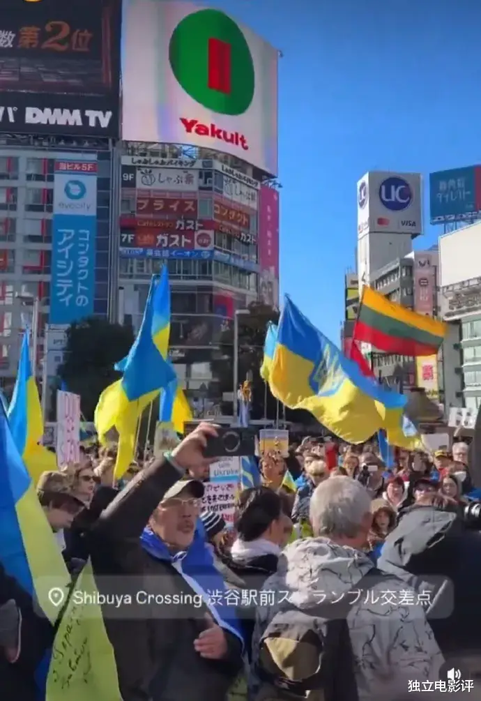 东京涉谷车站,日本民众高唱乌克兰国歌,支持乌克兰