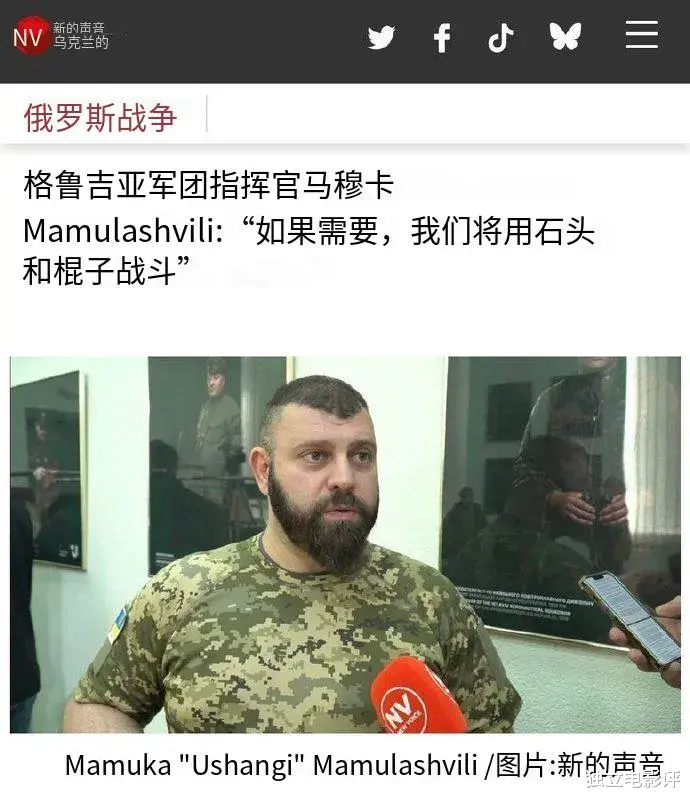 “格鲁吉亚人与乌克兰人一起准备战斗到最后。即使我们用完了武器,我们也会用石头和木棍战斗,”