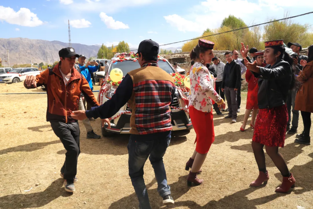 婚礼第二天,大家继续唱歌跳舞。今天新郎会来接新娘,新娘和家人亲朋好友一起合影。新娘上车的那一刻,她几岁的小侄子都哭了,舍不得姑姑。看着婚车慢慢开出院子,大家都依依不舍。