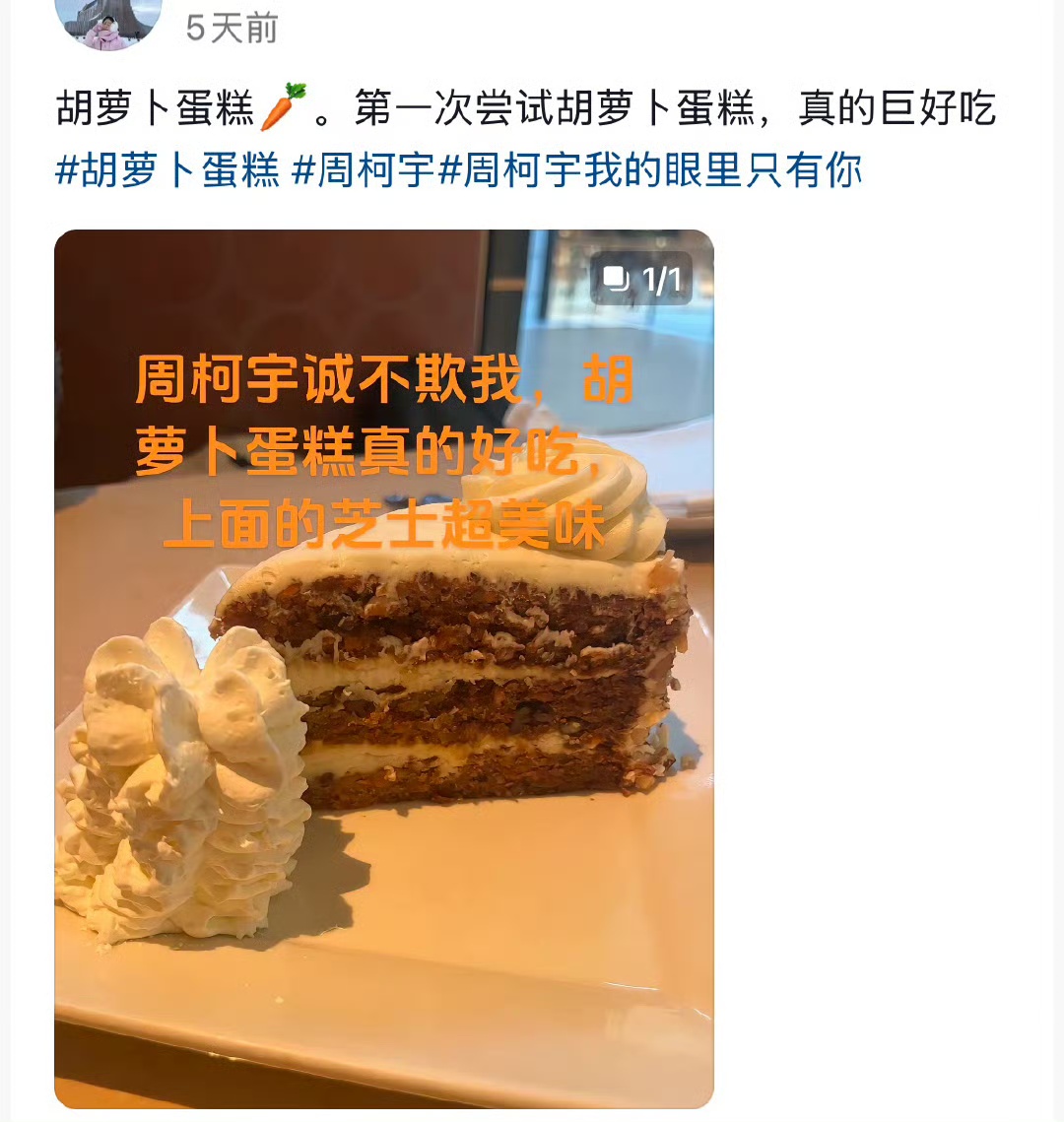 故事的起点,源于周柯宇对胡萝卜蛋糕的强烈安利。起初,这块蛋糕在大众眼中或许只是“其貌不扬”的代名词,外表朴素,甚至有些低调。但在周柯宇的推荐下,它仿佛被赋予了新的生命。他不仅亲自品尝,更向粉丝分享了独特的吃法:搭配美式咖啡或清爽茶饮,让原本单吃可能略显腻味的芝士,与微苦的咖啡或清新的茶饮碰撞出层次丰富的味觉体验。这种毫无保留的分享,瞬间点燃了粉丝的好奇心。