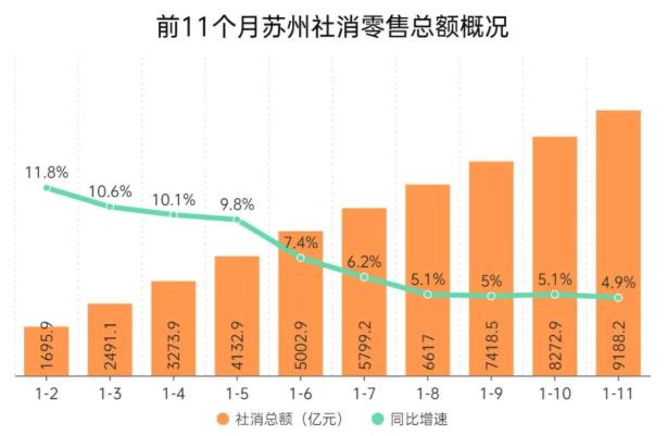当下,2024 年全年的各项经济数据正如同拼图一般逐块呈现,在这关键节点,苏州的表现堪称惊艳。来自权威部门的精准统计显示,仅在前11个月,苏州的社会消费品零售总额便一路高歌猛进: