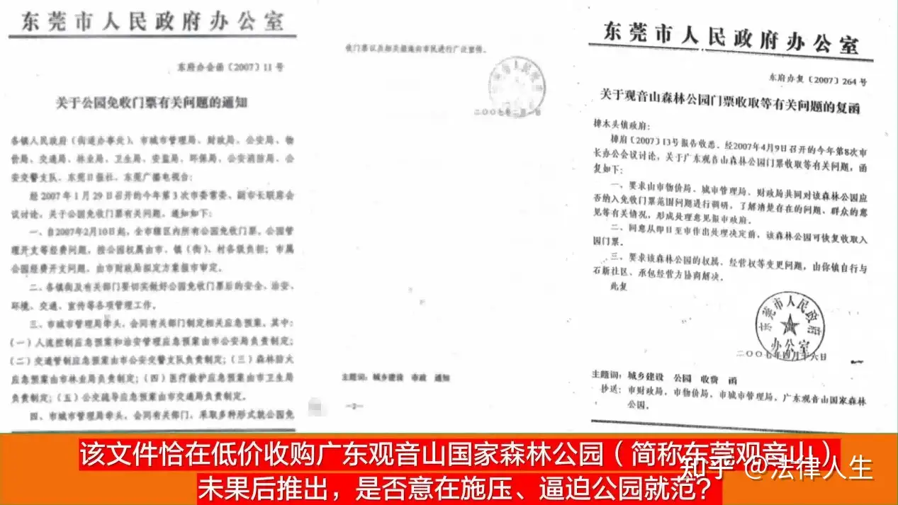 二、关于“樟木头政府、东莞市政府公开抢夺公园的经营权和财产”的说法不属实,实际上是东莞市政府根据当年相关政策为“推动全市一盘棋保护利用”。东莞观音山公园收取门票与2007年起全市公园免门票的“公益性规划”不符,东莞观音山公园方面“投资回报”难以与市的规划发展思路保持一致。