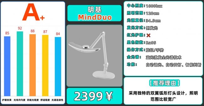 2、核心要点不踩雷的小孩护眼灯第二款推荐:明基MindDuo