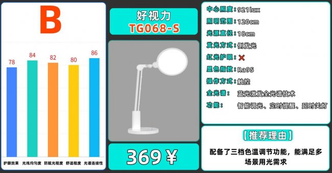4、核心要点不踩雷的小孩护眼灯第四款推荐:好视力TG068-S