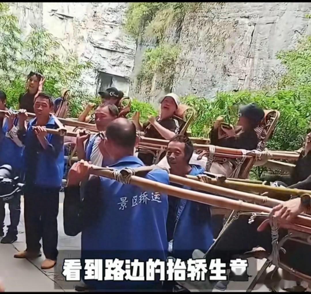 几名老外前往张家界游玩,看到了路边的抬轿生意,他们非常好奇,于是主动上前跟师傅说自己想试试,师傅以为来了生意,非常热情的答应了。