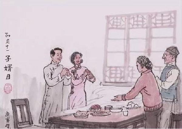 “请子婿”这天,娘家的哥哥或者弟弟要提前出门迎接,以示对女婿的敬重。闽南有首民谣叫《新年歌》,唱出了春节期间每天的重要活动,其中就有“请女婿”内容。