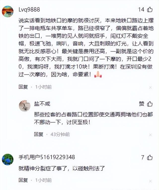 还有更多网友也分享了类似经历,称在该地铁站口多次遭遇门口摩的司机的言语挑衅和骚扰。