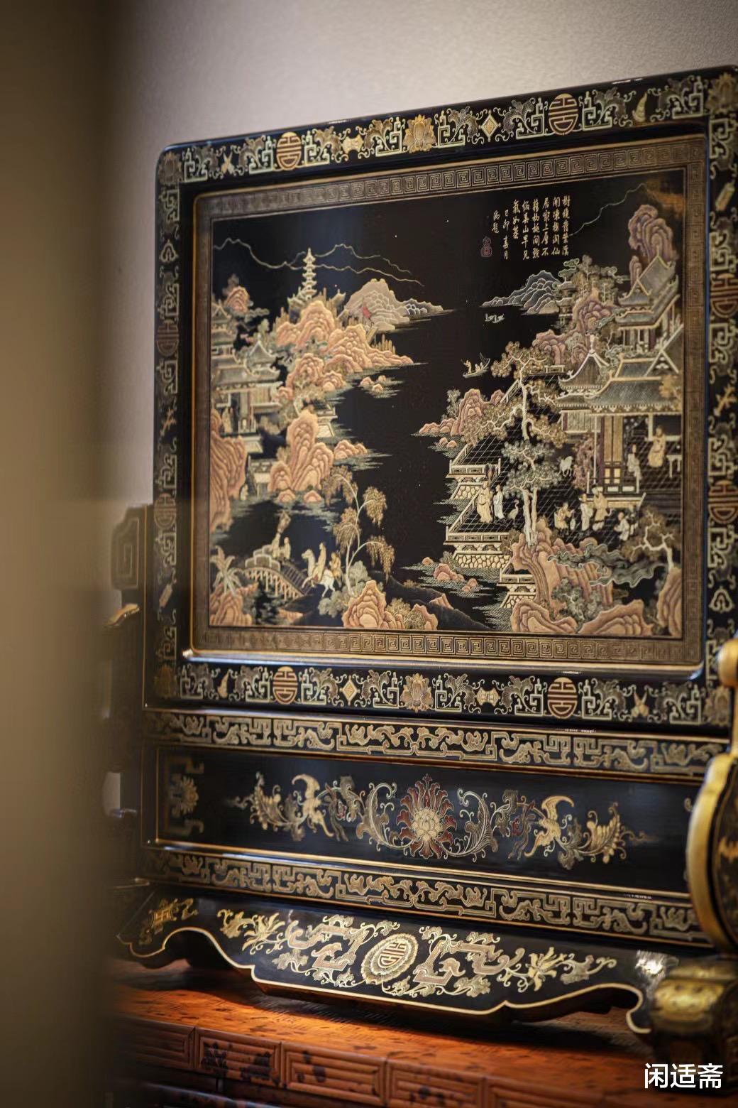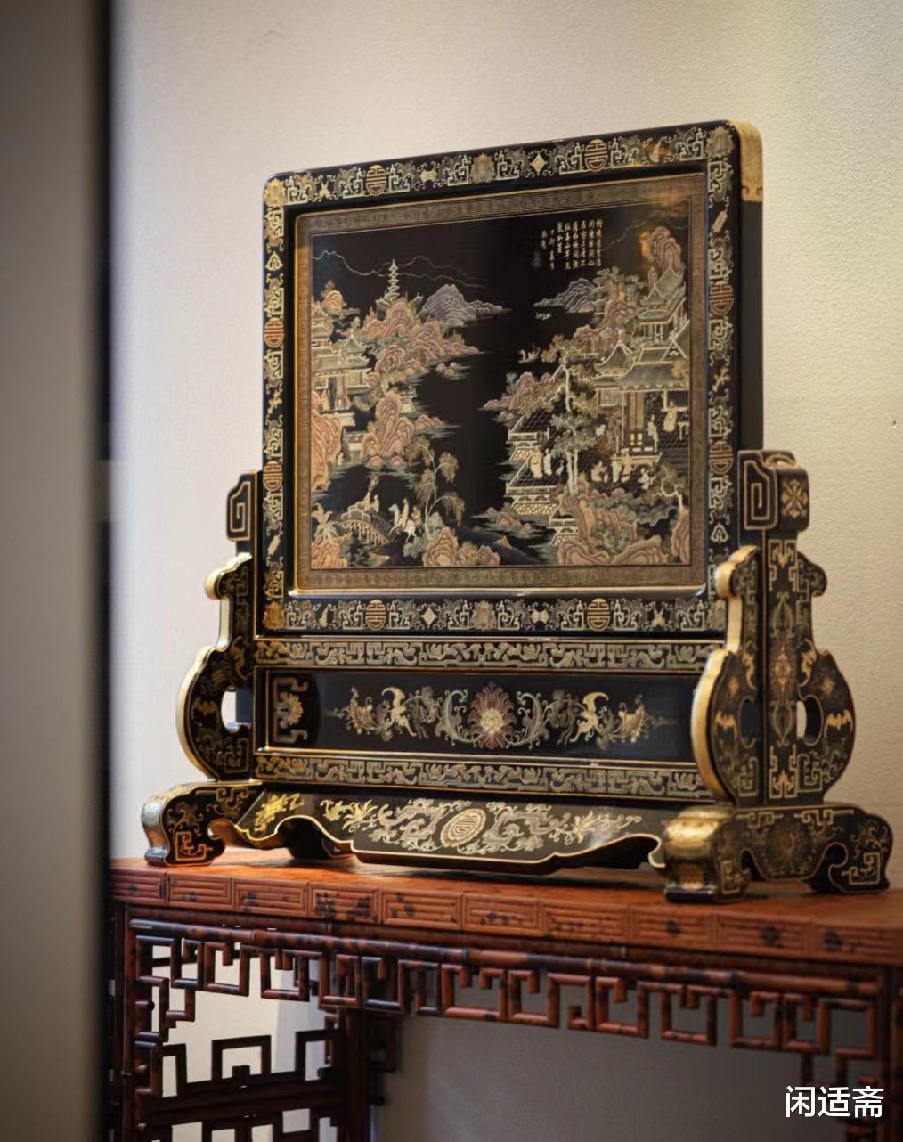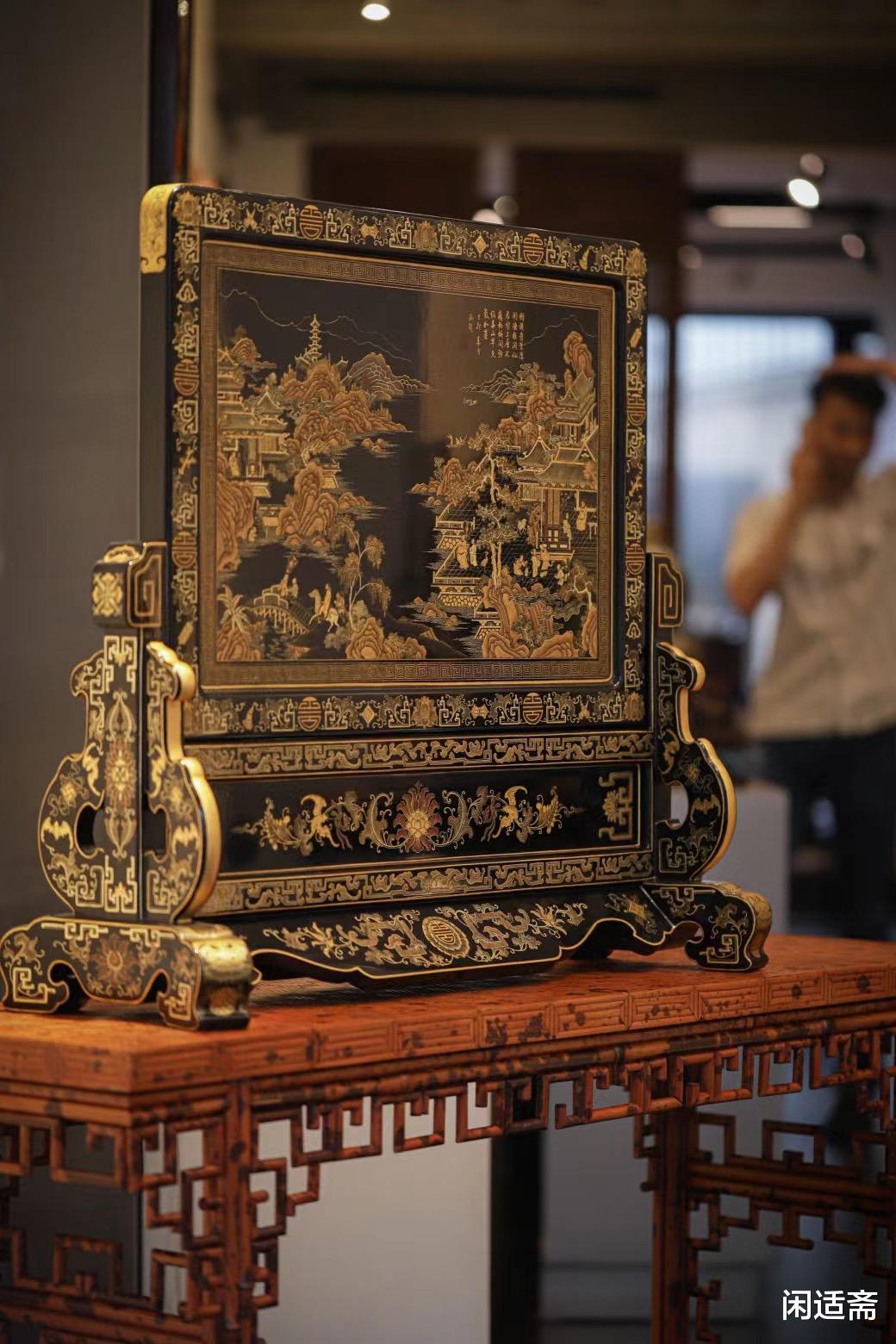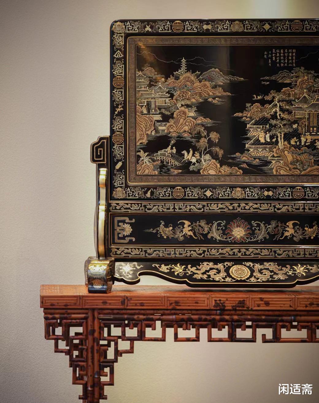 漆重芳華「大漆描金彩绘插屏」