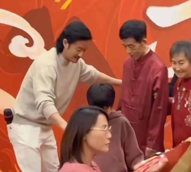 两位老人落坐时,吴京全程在一旁小心翼翼的呵护着,从这一个细微的动作就能看出吴京是一个很孝顺的人!
