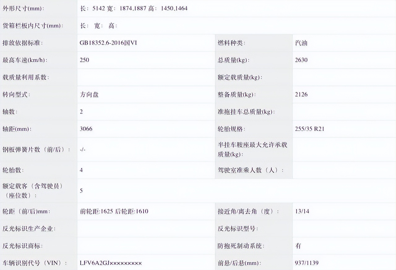 车身尺寸是本次换代的重点升级点,申报信息显示,新车长宽高分别为5142/1874(1887)/1450(1464)毫米,轴距3066毫米。对比现款在售车型(5050/1886/1475毫米,轴距3024毫米),车长增加92毫米,轴距加长42毫米,车内纵向乘坐空间与腿部余量将有明显提升,更契合国内用户对后排舒适性的需求。车身高度略有降低,配合加长轴距,整车姿态更沉稳舒展,符合中大型豪华轿车的定位。