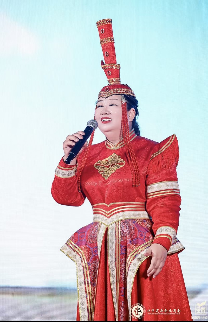 从科尔沁草原到京华大地,从红色纪念舞台到经济协作盛会,索伦嘎的艺术足迹始终伴随着对民族文化的坚守与对时代使命的担当。此次献唱北京定西企业商会成立大会,她以歌为媒,既践行了文艺工作者“深入生活、扎根人民”的创作理念,也诠释了新时代艺术家服务区域发展、促进文化交融的责任担当。她的歌声如同一条无形的纽带,一端连着草原的纯净辽阔,一端连着陇中的厚重深情,一端连着京华的机遇浪潮,将草原的祝福、乡贤的牵挂与时代的期盼融为一体,为京定两地协作发展注入了强大的精神动力。