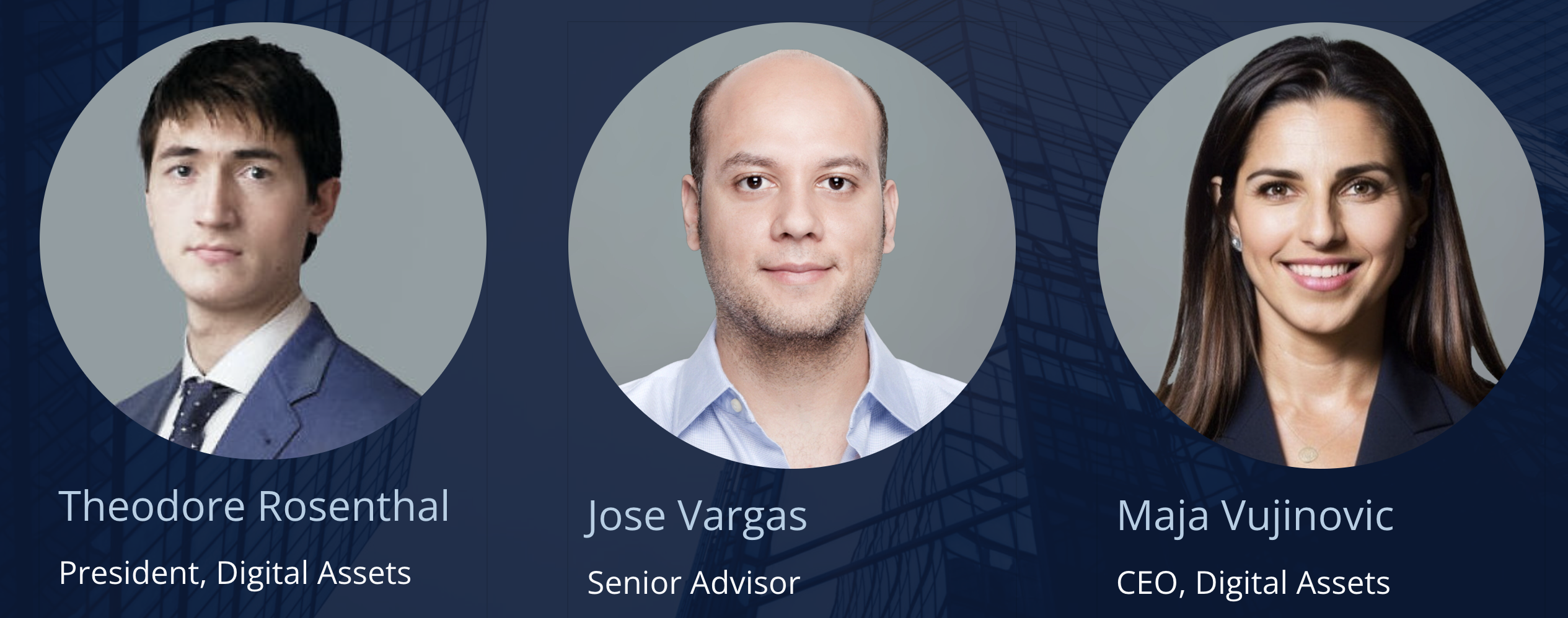 加密资产业务发展主管Jose Vargas则是一位富有经验的连续创业者和种子投资人,联合创立Healthcare.com、Osigu和PeopleFund等,曾成功创立并退出了5家公司,包括AutoWeb、BlueKite(被PayPal收购)和BrokersWeb。Vargas也参与了多个加密相关的早期投资,比如日本微策略Metaplanet和Akash Network等的种子轮投资。