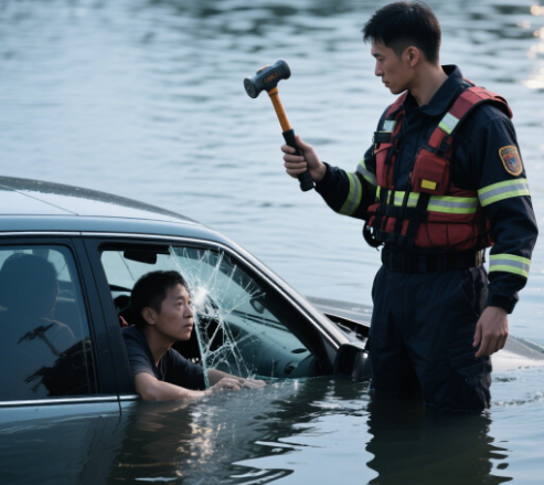 “快” 这个字至关重要。车辆落水后的每一秒都生死攸关,必须要快速反应。一旦车子掉进水里,要马上解开安全带,别磨蹭。然后赶紧尝试打开车门或者车窗。如果车门打不开,车窗也因为电路短路摇不下来,那就立刻拿起破窗工具砸窗。很多人在这种紧急情况下容易慌神,一慌就容易错过最佳逃生时机。所以,一定要保持冷静,动作迅速。要是在水位还比较低的时候,能直接打开车门或者车窗,那就赶紧逃,别犹豫。
