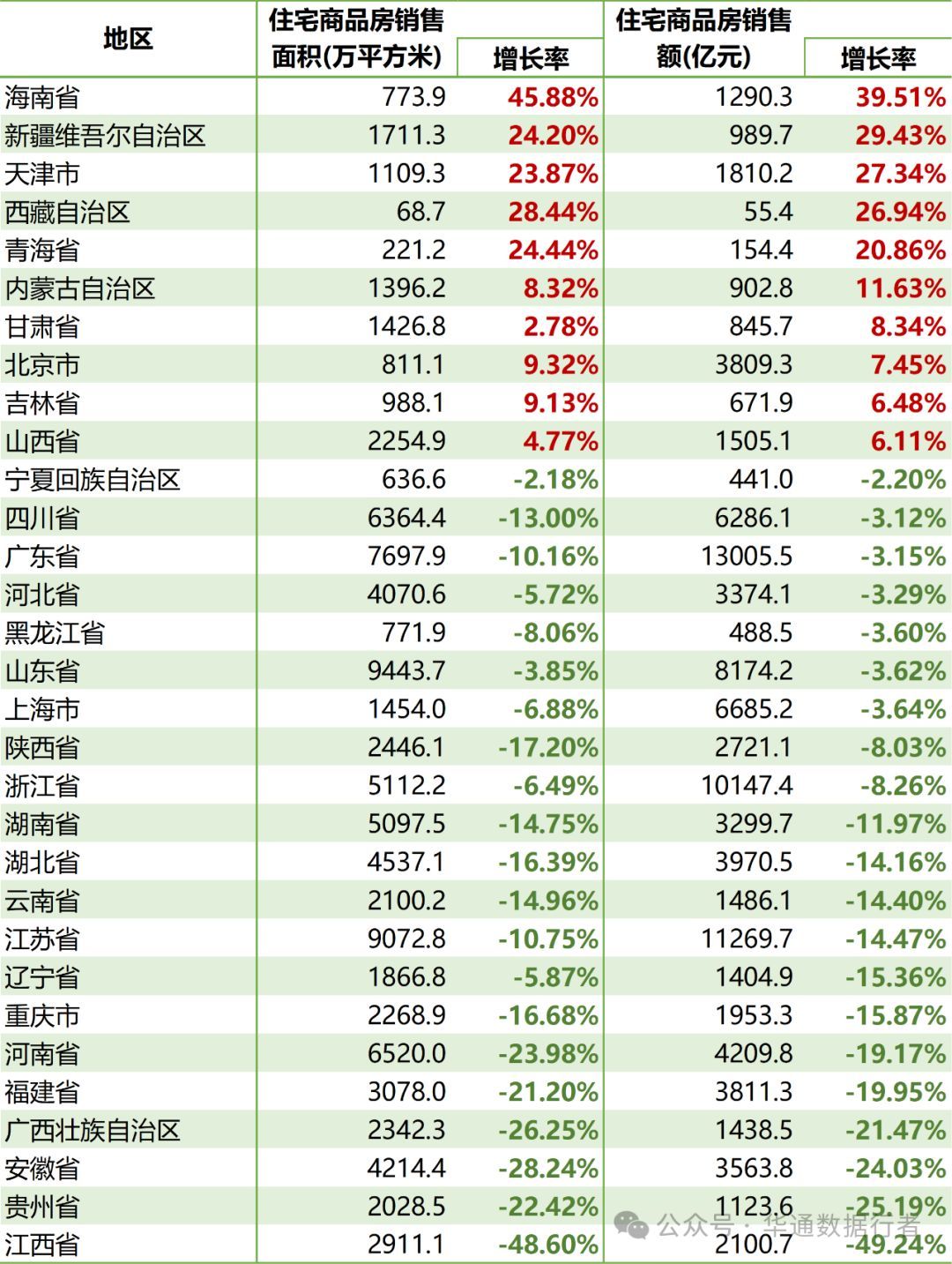各省2023年住宅商品房销售面积和销售额及增长率