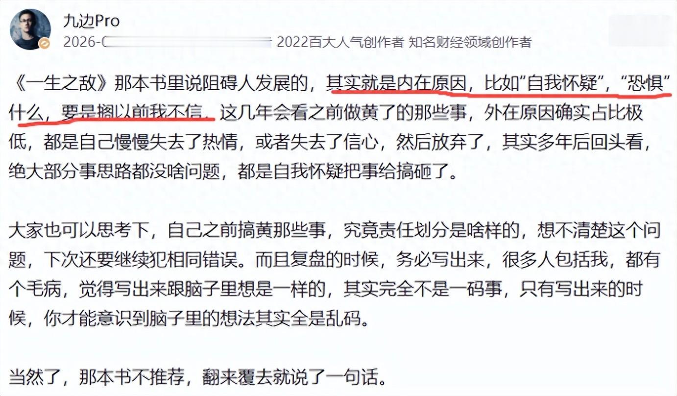 九边最近发了一条动态,对个人做事成事很有启发。