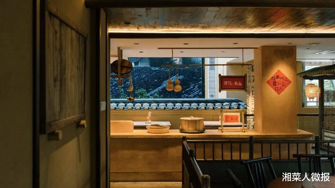 将“山里菜”打在招牌上的一碗白米饭,在神似程度上,也同样不甘示弱。自主米汤少不了,而利用木质结构分区的空间设计,再到菜品陈列和点菜区域的呈现方式,若你身处其中,某些瞬间甚至会产生“田小狗”的恍惚之感。