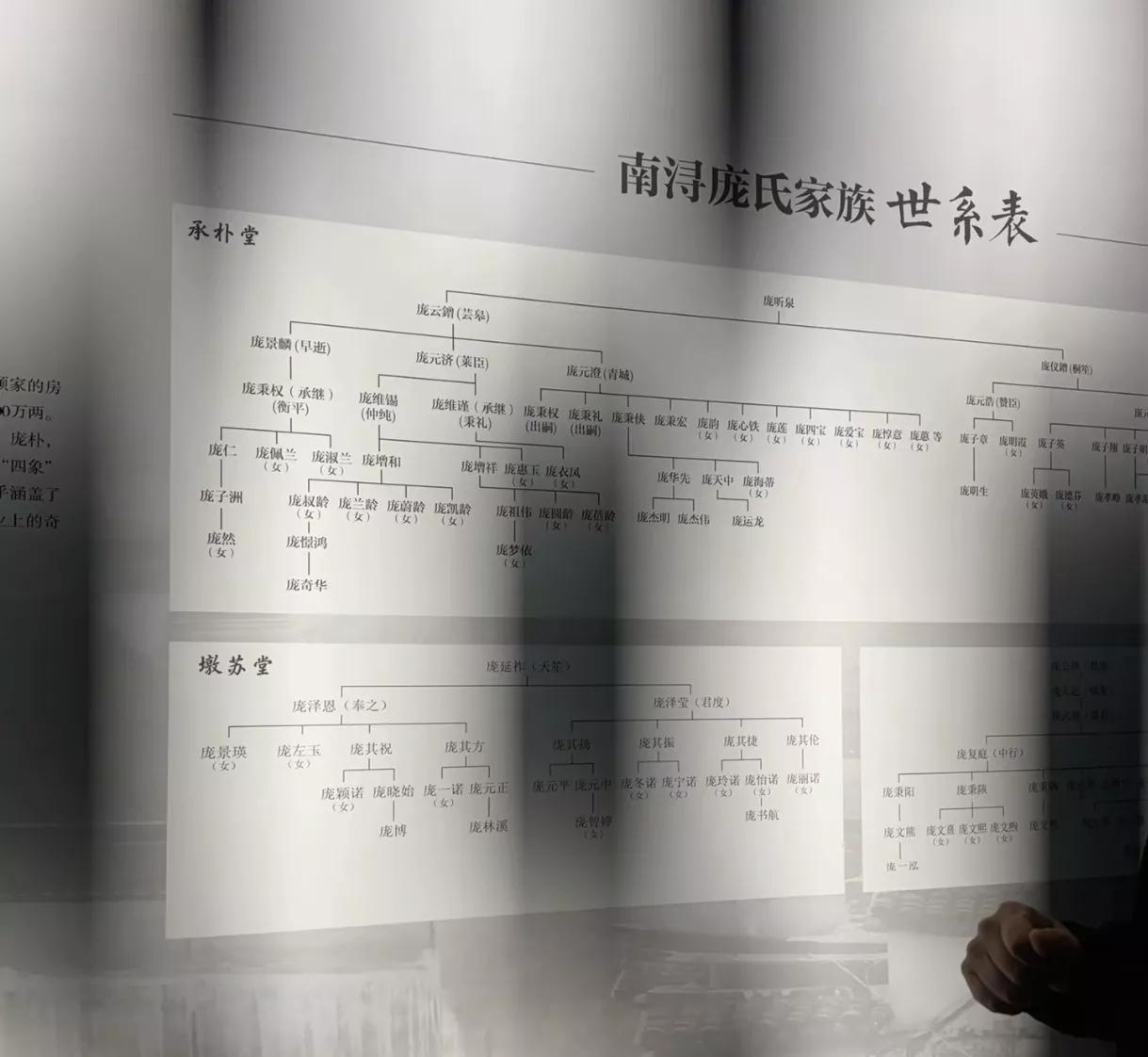 馆里摆着庞家旧藏真迹,还有家族世系表,能清楚看到庞氏从“四象”到现在的脉络