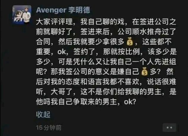 在昨晚,李明德发布了一条动态怒斥了自己在拍摄剧组遭受的种种不公待遇!