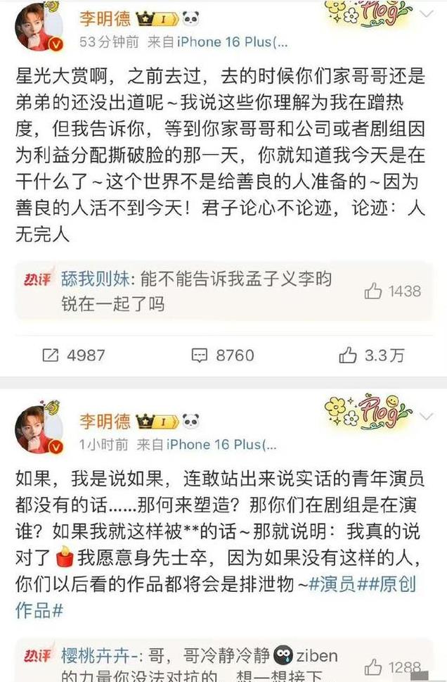 这一下直接把李明德惹着了,直接给评论区大回复,良心大拷问,对不对得起粉丝和演员身份!