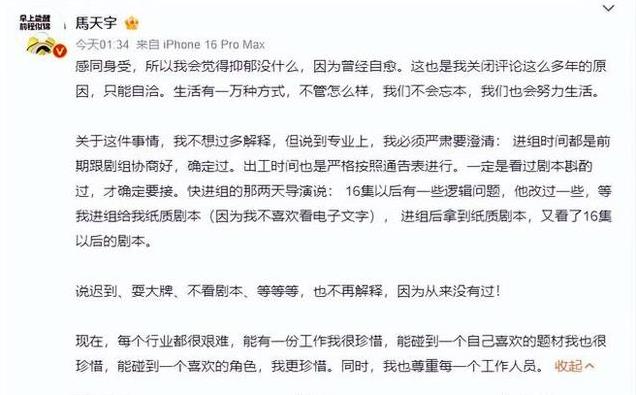 面对这样的质疑,导演这才发布了长文,大致意思是这件事情马天宇并不存在什么错误。