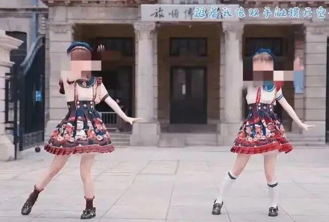 某博主穿着日系洛丽塔裙,在记录日军侵略历史的旅顺博物馆门口,跳日本宅舞。