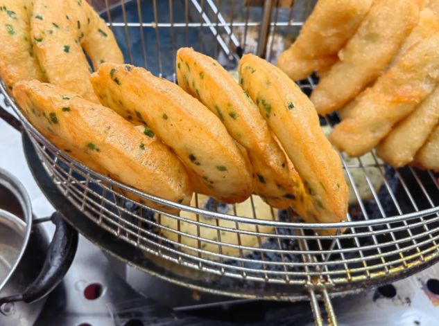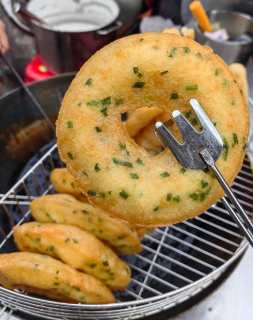 葱油粑粑是咸的,外酥里嫩,带着葱香。粘米粉加水调成糊,加入葱花和盐,用特制的模具舀一勺,放进油锅里炸。模具是圆形的,中间有个洞,炸出来的粑粑像一个小圆环,外圈酥脆,内圈软嫩。刚出锅的葱油粑粑,金黄酥脆,咬一口“咔嚓”作响,葱香和米香在口中弥漫,越嚼越香。长沙人喜欢把葱油粑粑当早餐,配一碗豆浆或者甜酒冲蛋,就是一顿简单又满足的早饭。