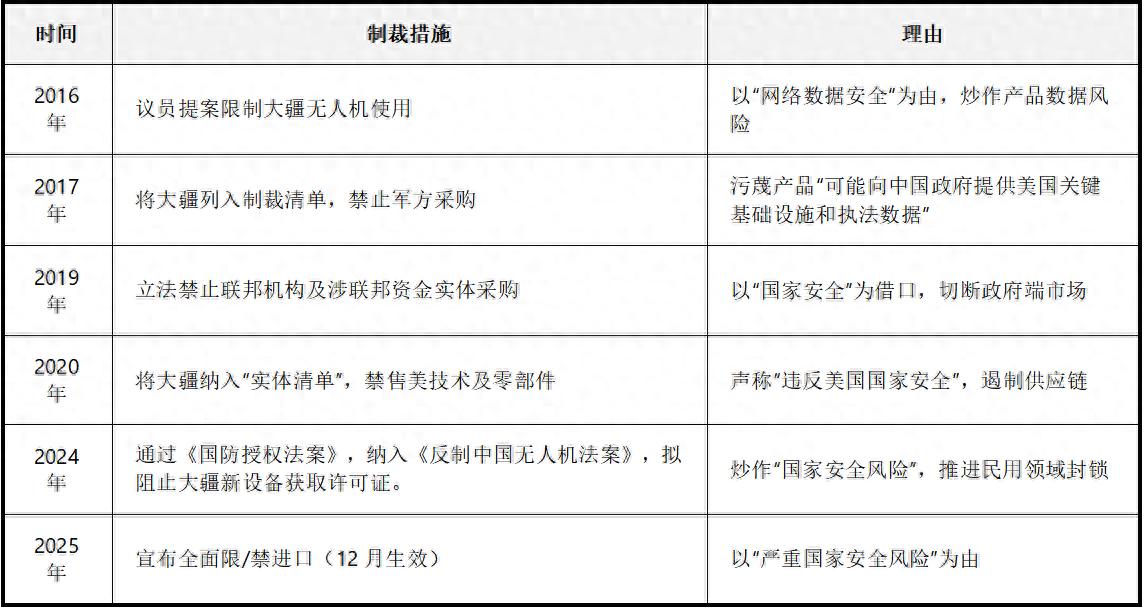 美国对中国无人机的“追剿”并非突然之举,而是历经十年的渐进式升级,从2016年就已开始,当时有议员以“网络数据安全”为由提案限制大疆;2017年官方制裁启动,美国国防部将大疆列入制裁清单,污蔑其产品“可能向中国政府提供美国关键基础设施和执法数据”,禁止军方采购。这是美国对中国无人机打压的开始。