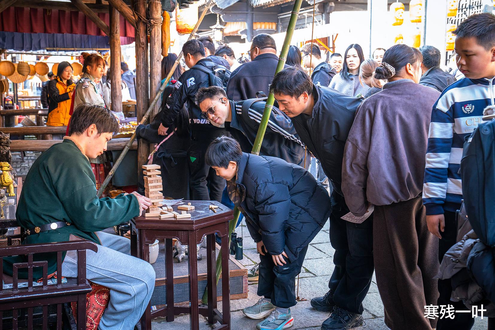 穿越时空的经典玩法:一张银票闯江湖,氛围感直接拉满!参与投壶、射箭、猜灯谜等趣味古风小游戏,通关即可赢取专属银票,银票既能在景区消费,也能兑换特色文创小礼品,老老少少都能找到乐趣、玩得不亦乐乎。有大叔笑着坦言:“在城里待久了没年味,这小游戏,真的让我找回了小时候过年的热闹与快乐!”