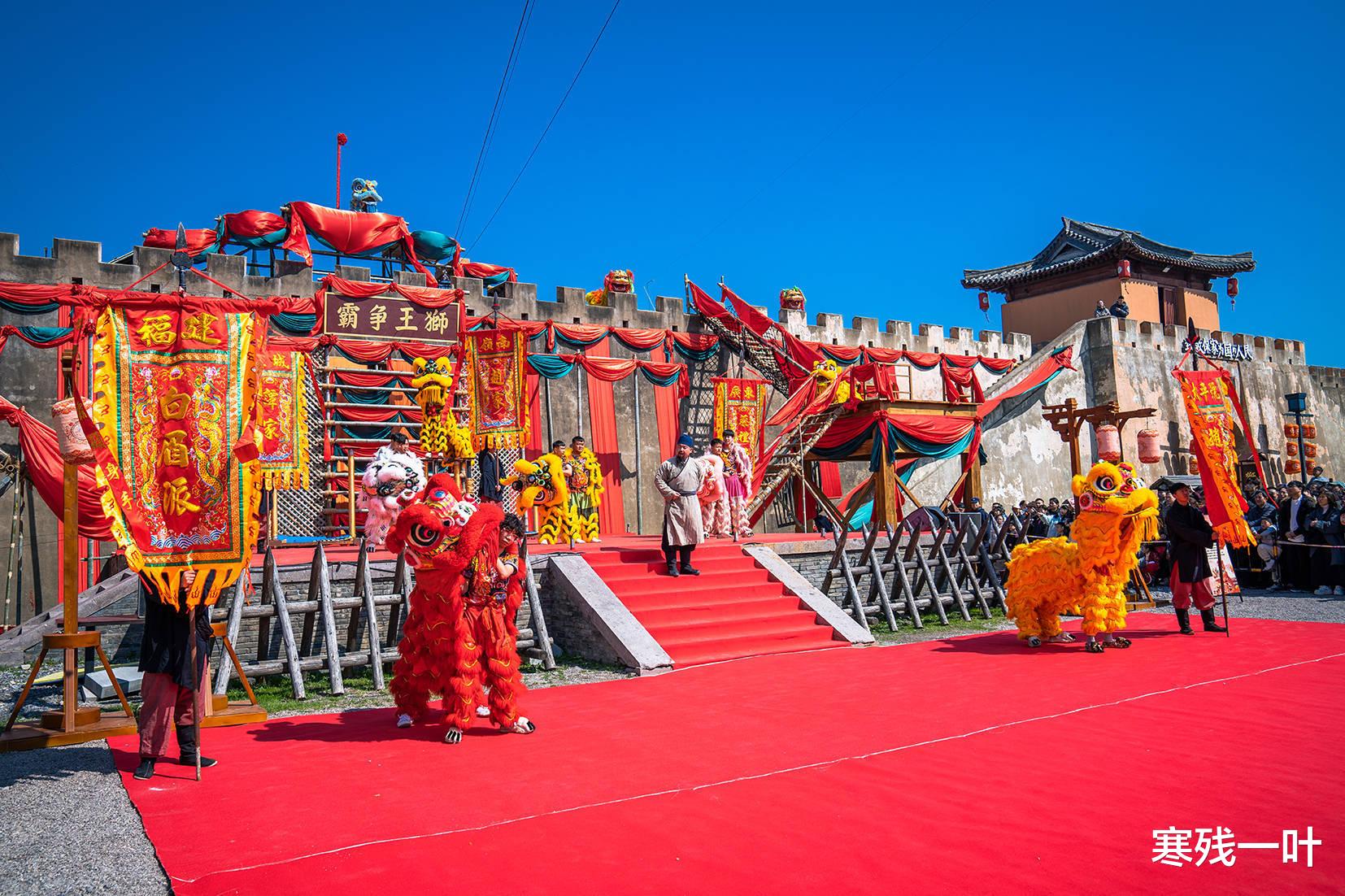 南北狮王争霸赛,燃爆全场!南北雄狮同台竞技、巅峰对决,腾跃、翻滚、吐幅、登高,每一个动作都精准利落、精彩绝伦,再叠加沉浸式影视剧情演绎,看得人热血沸腾、直呼过瘾。更具特色的是,游客可亲自参与其中,化身剧中人擂鼓助威,人山人海的热闹场面,便是新春最好的模样。