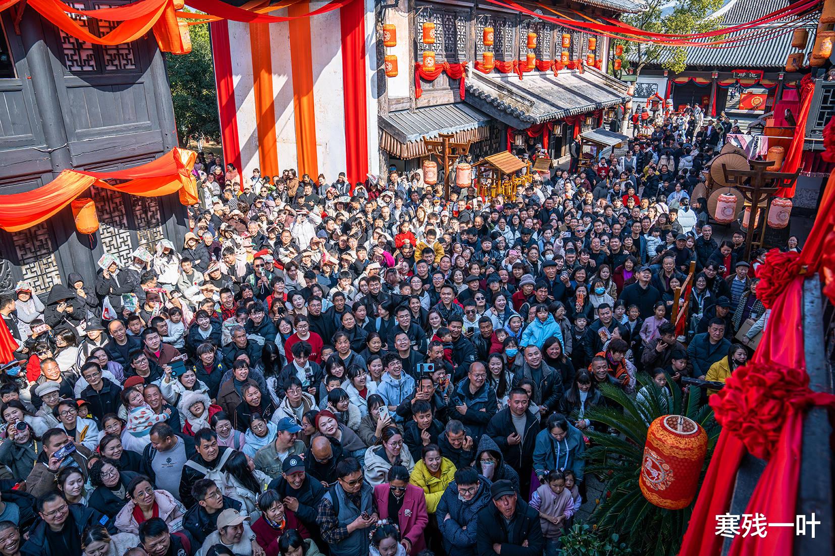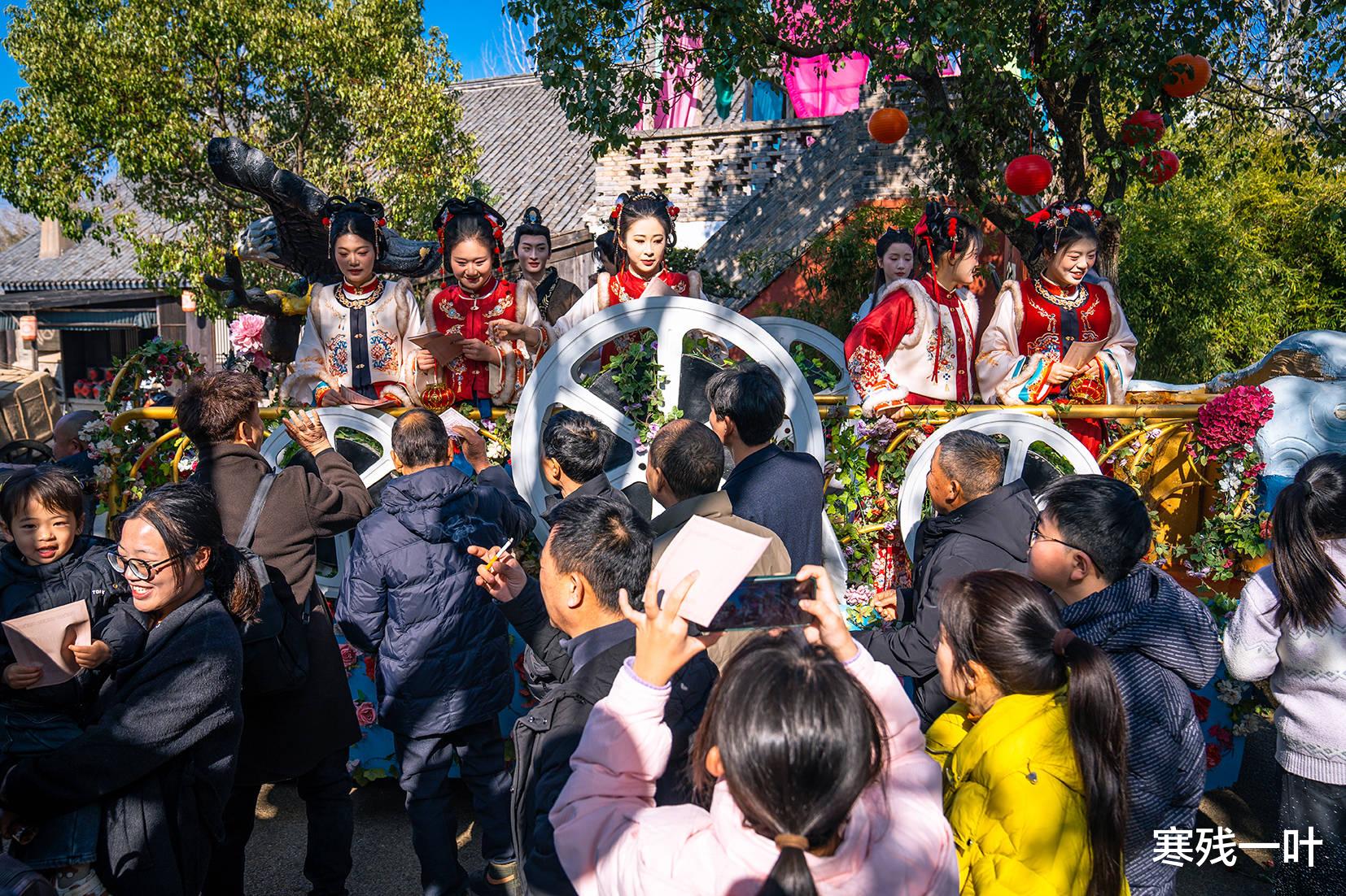 还未踏入景区大门,神雕广场早已被沸腾的人声、震天的锣鼓声彻底包裹!开城迎宾仪式热力全开,四匹骏马昂首开路,最强天团领衔登场,《神雕侠侣》《长安二十四计》等热播剧的经典角色依次亮相、互动送福,引得游客阵阵欢呼、快门不停,新春氛围感瞬间拉满、直接封神!