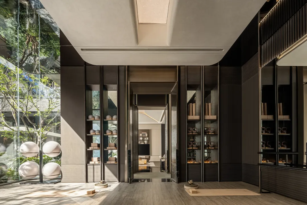 也可以在悬光茶室喝喝茶,三面落地窗,美景尽收眼底;同样可以看美景的还有瑜伽室,来一套古老的哈他瑜伽,开启心灵之旅。