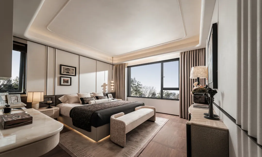 豪华主卧套,南北通透、引景入室,品质生活高配;儿童房朝南,阳光充沛适合孩子成长;老人房朝北,相对安静、凉爽,且整体动线与年轻人分开,作息互不打扰。