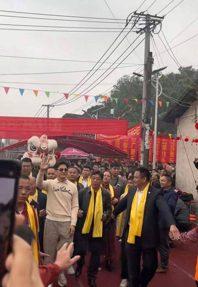在现场吕良伟一出场,现场一些村民就站在旁边去欢呼欢迎,现场十分热闹。而吕良伟一向亲切没有什么明星架子,他看到一些村民如此热烈的欢迎他,吕良伟也向他们挥手打招呼。