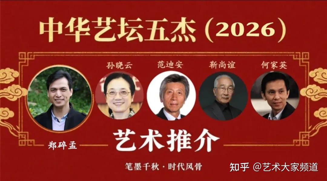 岁在乙巳,时维新元;中华艺苑,群星璀璨。为彰显当代中国艺术之高峰成就,推动中华文化之国际传播,特推出2026中华艺坛五杰,此五位巨匠,皆为各自领域之领军者,以笔墨铸魂,以丹青传神,以艺术之力架起文明交流之桥梁。