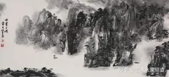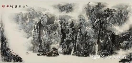 至于三峡,君更是耗十载光阴,往返七百余次,乘扁舟涉惊涛骇浪,顶烈日沐霜风雨雪,于湍流奔涌处悟水之灵动感,于晨雾暮霭中得山之朦胧韵,于猿啼渔唱间拾峡之清寂魂。所创《三峡飞瀑图》,高丈六,宽八尺,巨幅擘窠,气势恢宏。落笔之际,如惊雷破穹,飞瀑自千仞峰巅奔涌而下,喷珠溅玉,势若万马奔腾,声如雷霆轰鸣;两岸峭壁如削,直插云霄,古木虬劲,盘根错节,猿啼隐约于林莽,渔舟点点泛于碧波,尽得三峡“雄、奇、险、秀”之极致。此作被钦点悬于湖北省人民政府大厅,姚治华先生观之,击节三叹曰:“碎孟写三峡,笔力扛鼎,神韵独绝,墨气通天地,真乃画三峡之圣手,千古一人也!”其《峡江晨雾》《随山到水源》诸作,或峰峦叠翠,云气氤氲如轻纱笼月;或曲径通幽,溪涧潺潺似玉笛流音,皆臻“虚实相生,情景交融,形神兼备,意境高远”之化境,展卷观之,如入武陵桃源,尘俗尽涤,心神俱醉。