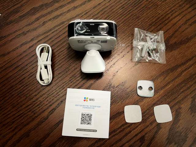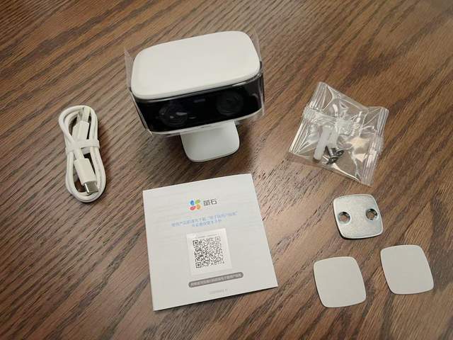 包装盒内含萤石小魔方CB60本体一个,USB to Type-c数据线一根,安装底座和安装膨胀螺丝两颗。