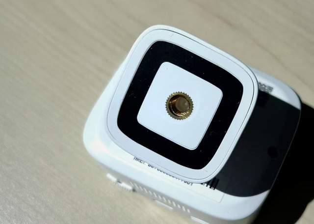 中间部位是type-c充电口。左上角分别是存储卡插槽和Sim卡插槽。萤石小魔方CB60自带4G Sim卡,无限流量,4G网络稳定可靠,无需无线网络也能保持流畅的监控画面,这对于经常需要在不同地点进行监控的用户来说,是非常实用的功能。