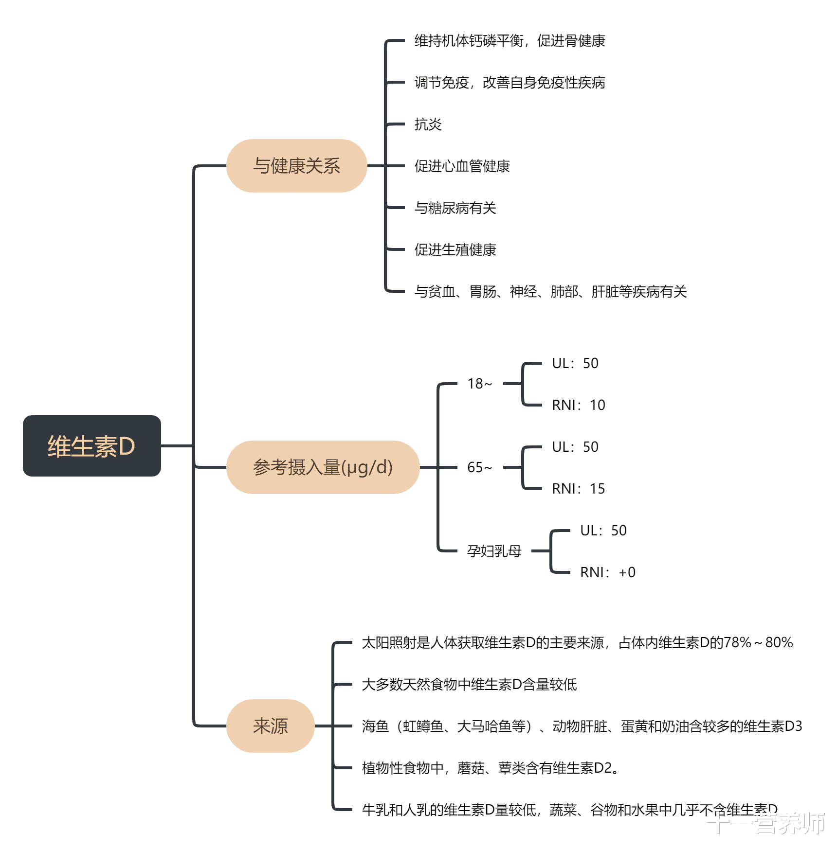 本文主要介绍维生素D的相关知识,包括与健康的关系、缺乏与过量、参考摄入量和食物来源。