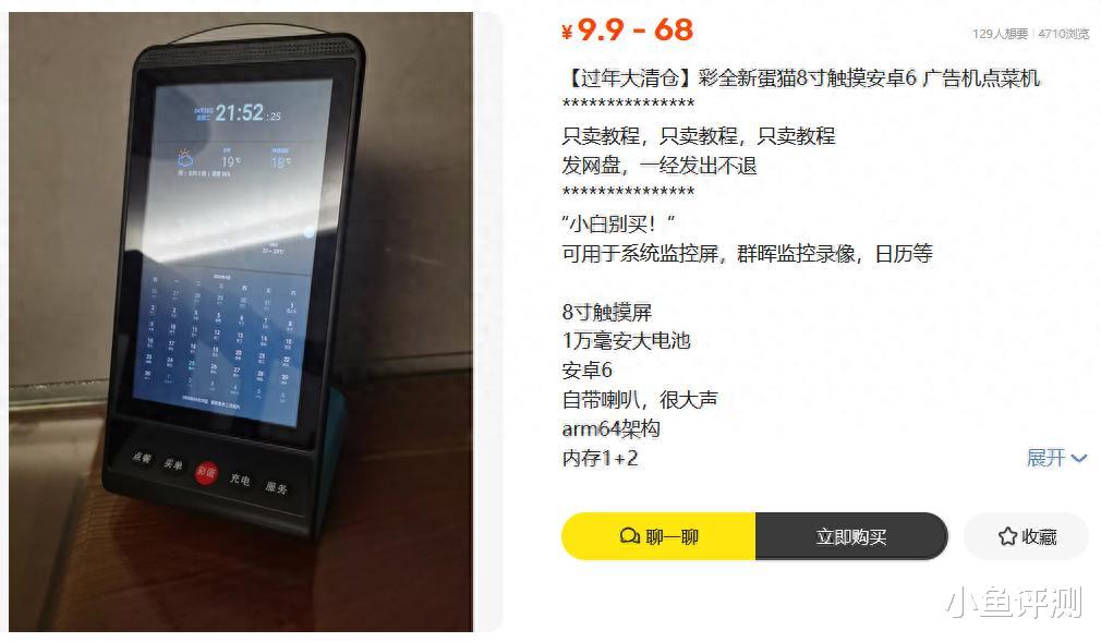 兄弟们,二手鱼里又冒出来一个让垃圾佬们心痒痒的小玩意儿。最近有一批全新的彩蛋猫8寸点餐机流出来了,卖家说只卖教程,但也提供了整机,教程9.9块,整机直接干到了68块。很多老铁第一反应肯定是:给我看这个垃圾干啥?划走!