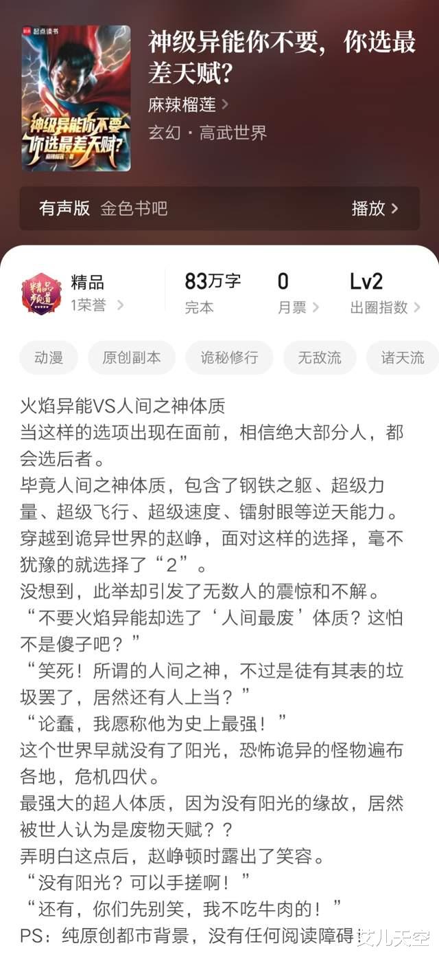 麻辣榴莲的这本《神级异能你不要,你选最差天赋?》完结了。
