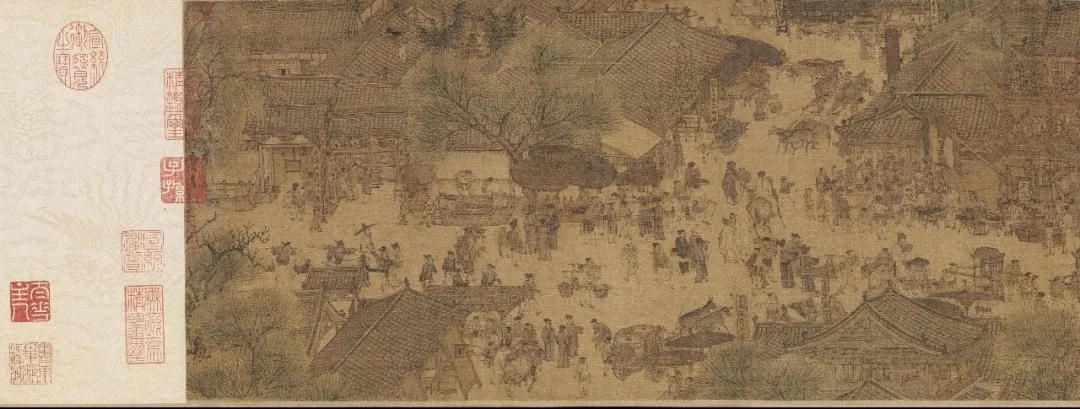 2.实物层面:《清明上河图》的细节拆解,还原了市场经济的微观形态——从汴河的“黄金水道”到街市的专业化分工,从税务管理的规范化到“入城留白处”的国际商贸往来,与史料形成相互印证;