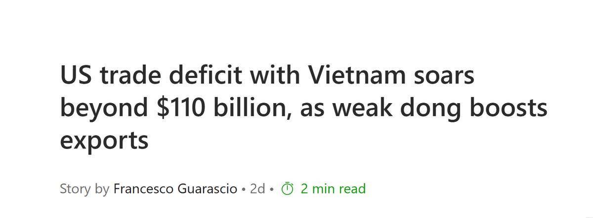 越南盾的持续贬值,使得越南商品在国际上的价格随之降低,很大程度上刺激了越南的对外出口。作为越南最大出口目的地的美国,自然会涌入更多越南商品,让越南企业赚走更多美元。