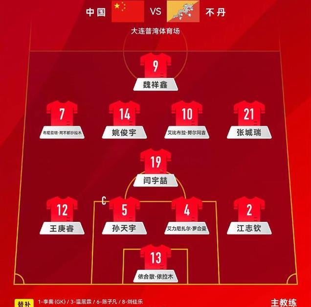 本场对阵不丹国少比赛,主帅上村健一排出4141攻击型阵容。