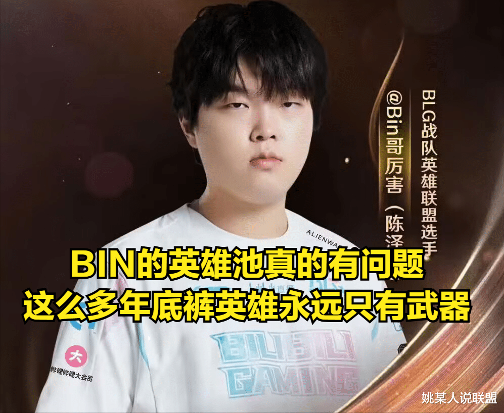 正因为BIN的英雄池有明显短板,所以很多观众都希望BIN能够把心思放在排位训练上面,而不是把心思全都放在赛前采访吹牛和赛后找理由道歉,毕竟BIN在BLG全队选手们里面,排位分数最低、排位数量也仅有其他选手的一半的选手。(你们觉得BIN能够练出坦克英雄吗?感觉除了奎桑提BIN就没有坦克英雄能玩了)