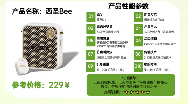 在硬件和技术方面,Bee搭载旗舰级D类高增益功放芯片和广角环向扩声结构,彻底打破传统扩音瓶颈,音量澎湃、扩音均匀稳定。自研的HiTone人声动态增益调控引擎结合全链路抗啸叫算法,能精准识别人声频段,动态削弱背景噪声和环境干扰,从根本上杜绝刺耳爆音,让声音清晰聚焦、自然还原。下图是各大热门新闻网对西圣bee的评价: