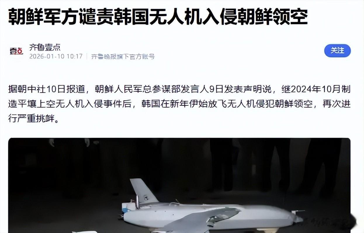 2026年的东北亚,没有等来祥和的开局,反倒被一架小型无人机的轰鸣声打破平静,1月4日,韩国一架无人机悄然越过军事分界线,深入朝鲜腹地156公里开展侦察,这场不宣而战的无声挑衅,如同投入湖面的石子,激起层层涟漪。