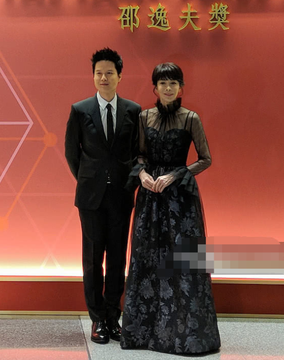 郑裕玲在黑色薄纱下搭配了一件黑色吊带衬裙,黑色吊带衬裙突显了女性的性感魅力,露出优美的肩膀线条、细长的手臂线条,展示了妩媚的一面。刺绣设计为整体造型注入了独特的亮点。银色花朵刺绣在黑色基调上十分显眼,既增加了整体的层次感,也使得服装更富有精致感和艺术感。