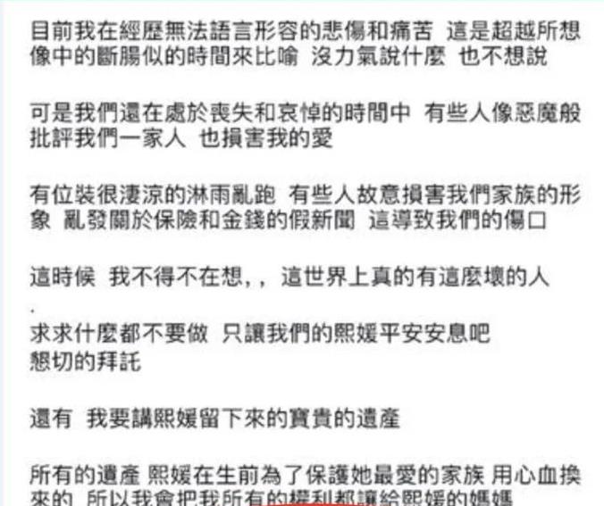 这才算水落石出了。而包机事件结束后。具俊晔终究发布了正式声明,于该声明中,具俊晔阐述了诸多事项。具俊晔特别强调的有三点内容。遗产分配是其中一个问题。根据他的宣告,所有物品将被转赠予大S的母亲。孩子的抚养权是第二个问题。